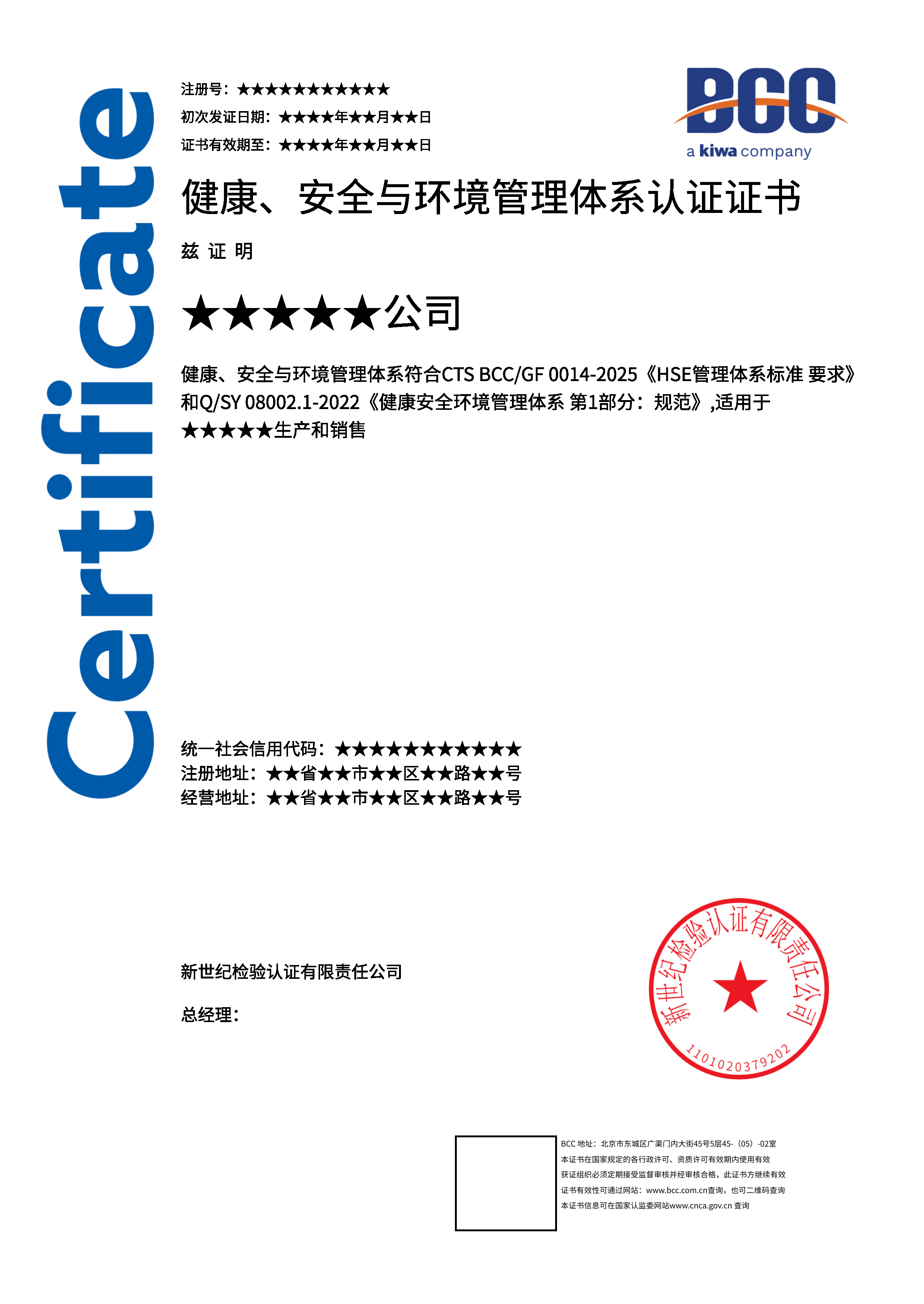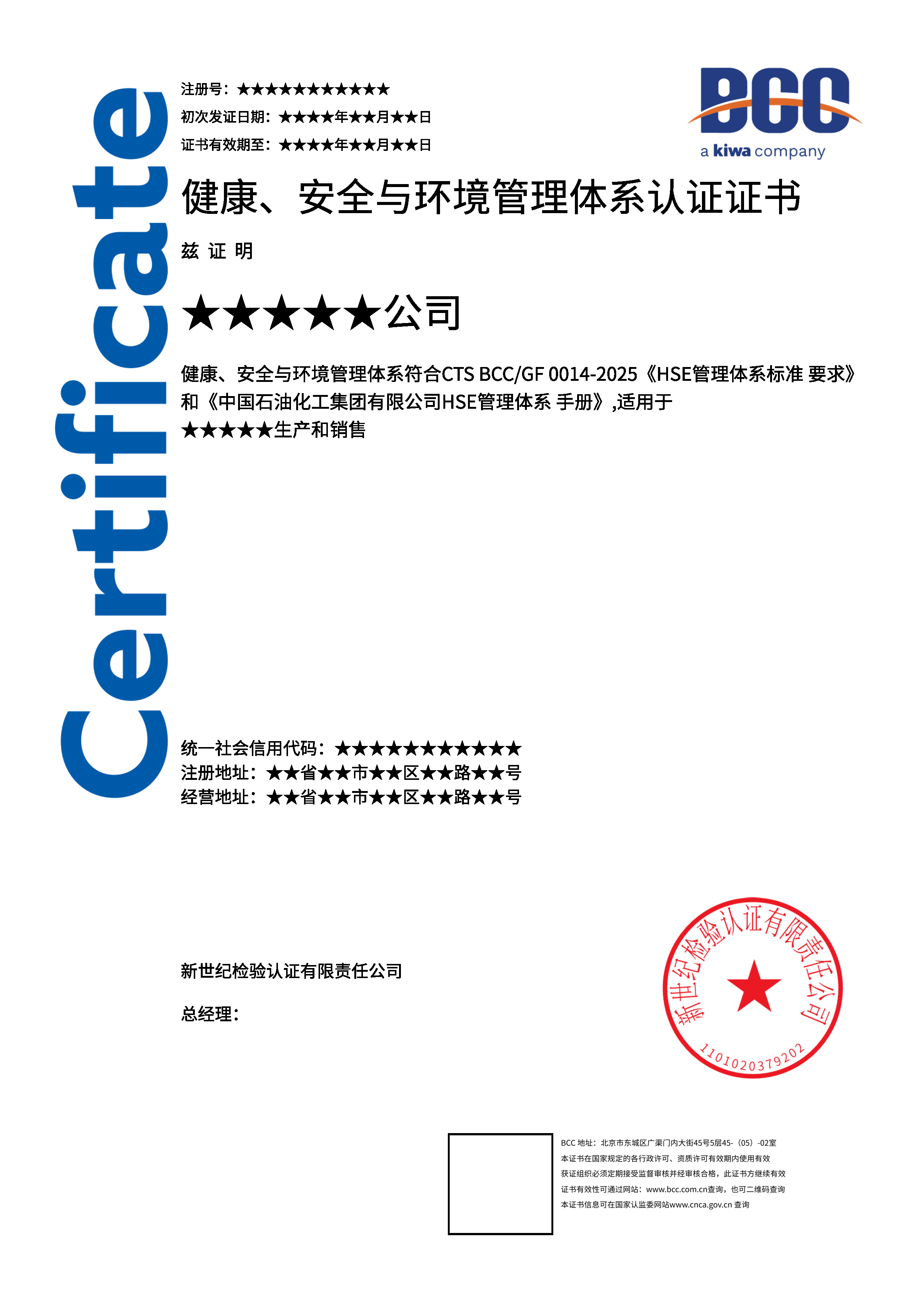 本頁涉及的認(rèn)證服務(wù)中均有對應(yīng)的《認(rèn)證實(shí)施規(guī)則》,BCC擁有其最終解釋權(quán)。任何組織及個(gè)人未經(jīng)BCC許可,不得以任何形式全部或部分使用(法律要求除外)認(rèn)證相關(guān)信息。如需獲取相關(guān)實(shí)施規(guī)則請用以下方式聯(lián)系獲?。弘娫挘?10-58579316   郵箱:fwjs@kiwa.cn