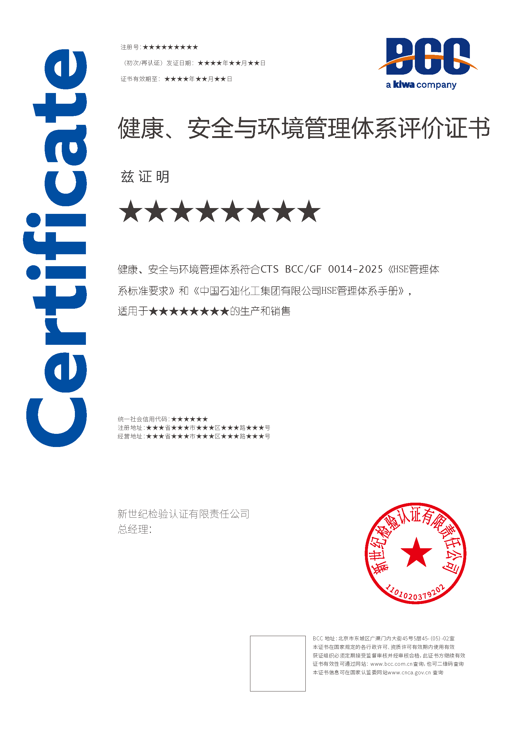 本頁涉及的認(rèn)證服務(wù)中均有對應(yīng)的《認(rèn)證實施規(guī)則》,BCC擁有其最終解釋權(quán)。任何組織及個人未經(jīng)BCC許可,不得以任何形式全部或部分使用(法律要求除外)認(rèn)證相關(guān)信息。如需獲取相關(guān)實施規(guī)則請用以下方式聯(lián)系獲?。弘娫挘?10-58579316   郵箱:fwjs@kiwa.cn