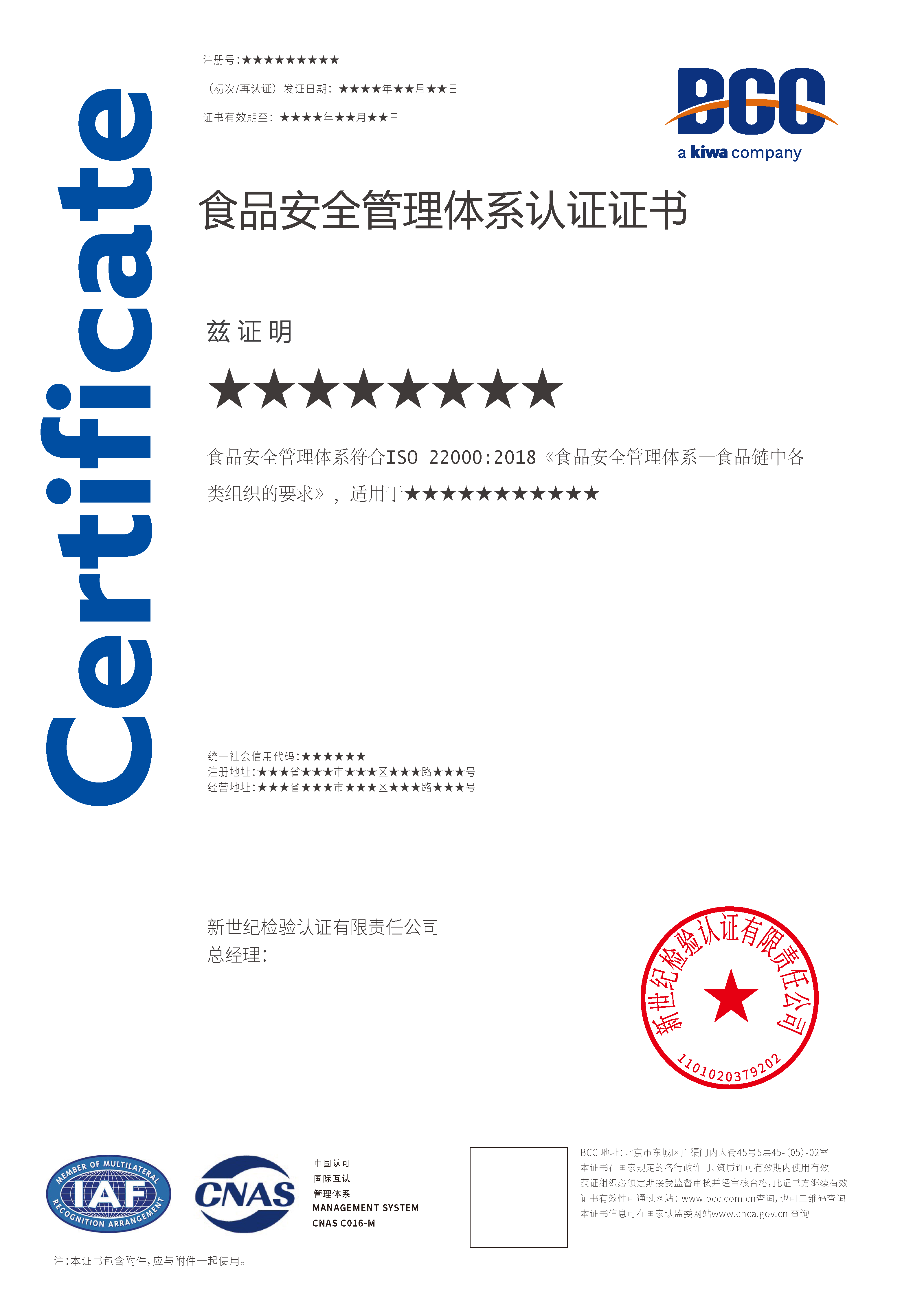 本頁涉及的認(rèn)證服務(wù)中均有對應(yīng)的《認(rèn)證實(shí)施規(guī)則》,BCC擁有其最終解釋權(quán)。任何組織及個(gè)人未經(jīng)BCC許可,不得以任何形式全部或部分使用(法律要求除外)認(rèn)證相關(guān)信息。如需獲取相關(guān)實(shí)施規(guī)則請用以下方式聯(lián)系獲?。弘娫挘?10-58579316   郵箱:fwjs@kiwa.cn