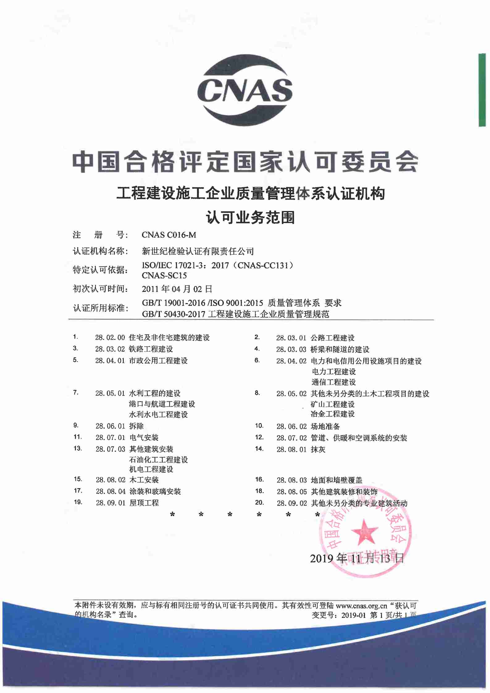 職業(yè)健康安全管理體系認證機構(gòu)認可證書(一) 職業(yè)健康安全管理體系認證機構(gòu)認可證書(二) 環(huán)境管理體系認證機構(gòu)認可證書(一) 環(huán)境管理體系認證機構(gòu)認可證書(二) 知識產(chǎn)權(quán)管理體系認可證書 工程建設(shè)施工企業(yè)質(zhì)量管理體系認證機構(gòu)認可證書