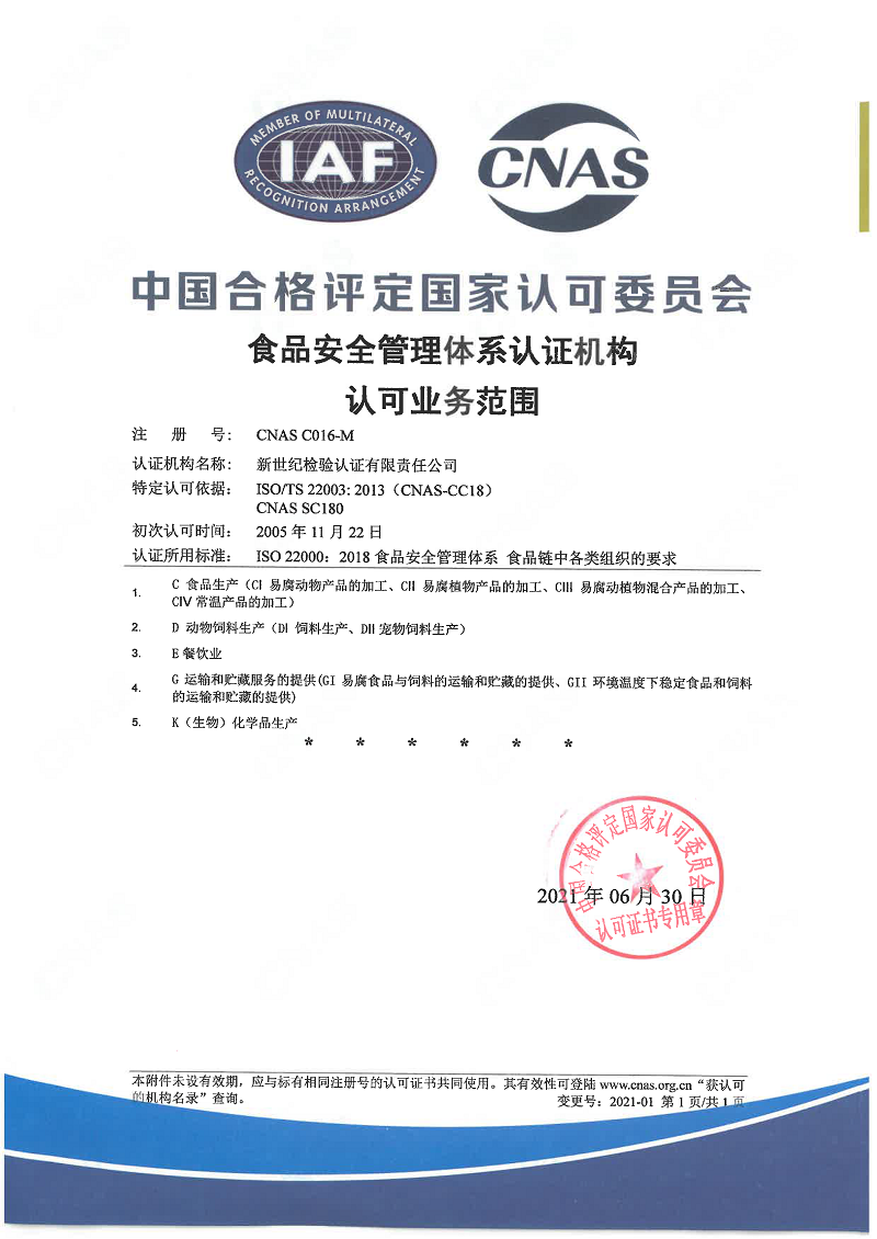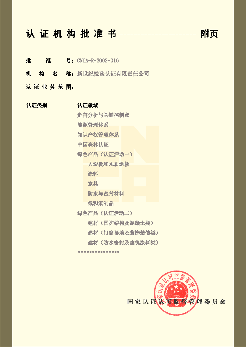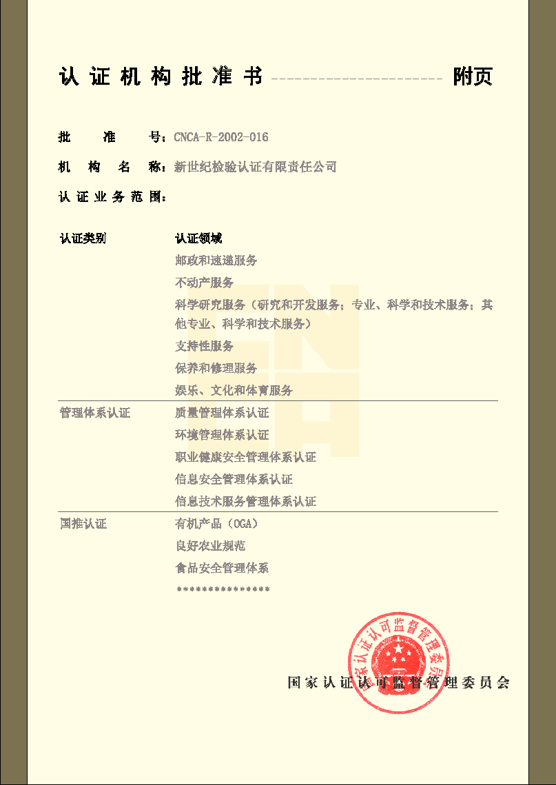食品安全管理體系認證機構(gòu)認可證書(一) 良好農(nóng)業(yè)規(guī)范認可證書 信息安全管理體系認證機構(gòu)認可證書 森林認證機構(gòu)認可證書 信息技術(shù)服務(wù)管理體系認證機構(gòu)認可證書 能源管理體系認證機構(gòu)認可證書