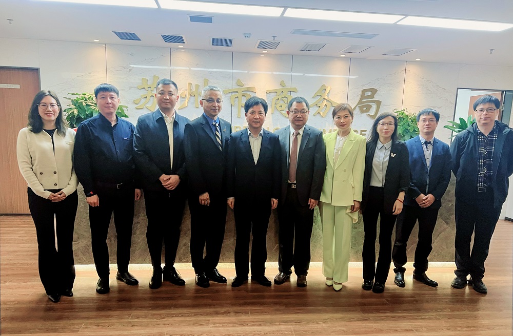 11月16日上午,Kiwa 中國(guó)董事總經(jīng)理、首席執(zhí)行官陶然亭帶隊(duì)拜訪了蘇州市商務(wù)局,與局長(zhǎng)孫建江、副局長(zhǎng)張皓,就雙方進(jìn)一步深入合作進(jìn)行了交流。陶總介紹了KIWA集團(tuán)的發(fā)展歷程和全球業(yè)務(wù),以及kiwa 在蘇州的兩家企業(yè)普德光伏(蘇州)有限公司和上海恩可埃認(rèn)證有限公司蘇州分公司的業(yè)務(wù)發(fā)展情況。孫局長(zhǎng)就蘇州在外貿(mào)領(lǐng)域的發(fā)展以及商務(wù)部門(mén)對(duì)蘇州企業(yè)的支持工作做了介紹。