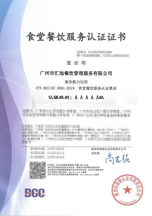 廣州市匯旭餐飲管理服務有限公司(以下簡稱 匯旭餐飲)是一家以食堂承包、中餐配送服務為主營業(yè)務的餐飲公司,是廣東省工商局認可的守合同重信用企業(yè)。為了提供更規(guī)范、高效的優(yōu)質(zhì)服務,他們向BCC提交了食堂餐飲服務認證申請,希望以第三方評價為改進契機,創(chuàng)造更高品質(zhì)服務,為用戶帶來更好體驗。