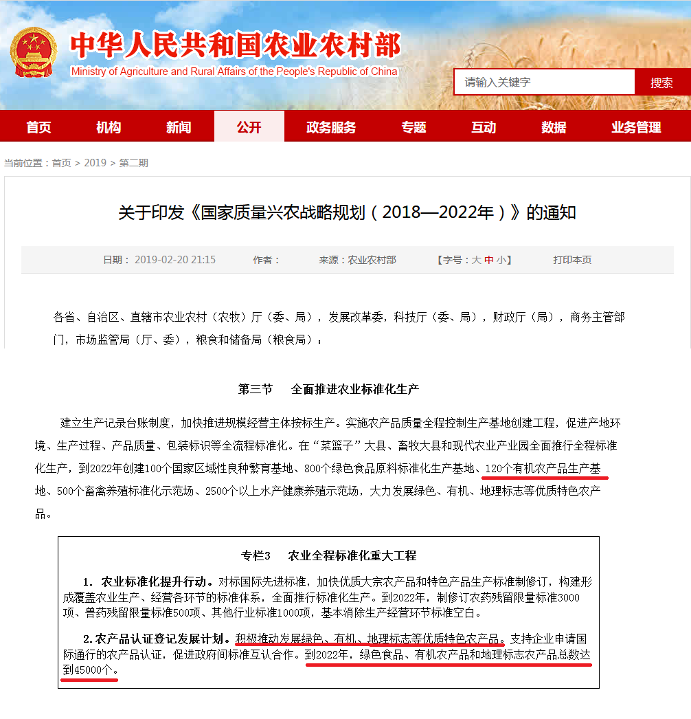 意見指出,“引導(dǎo)企業(yè)爭取國際有機(jī)農(nóng)產(chǎn)品認(rèn)證,加快提升國內(nèi)綠色、有機(jī)農(nóng)產(chǎn)品認(rèn)證的權(quán)威性和影響力。”