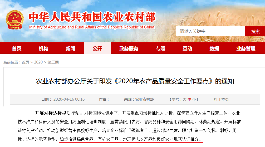 通知指出,開展綠色食品、有機(jī)農(nóng)產(chǎn)品認(rèn)證,提高產(chǎn)品質(zhì)量水平和市場競爭力。對(duì)于認(rèn)證工作提供了工作基礎(chǔ)。