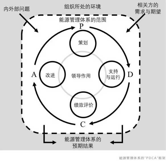 ISO 50001提供了一個方法框架,用于開發(fā)有效的能源管理系統(tǒng),與其他ISO管理體系標(biāo)準(zhǔn)一樣,能源管理體系遵循“計劃-執(zhí)行-檢查-行動”(PDCA)流程,以實現(xiàn)持續(xù)改進(jìn)。