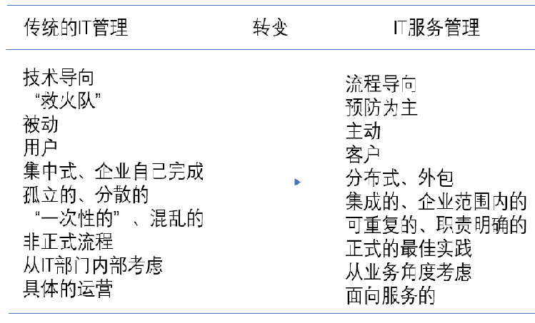 根本出發(fā)點(diǎn)在于通過 IT 服務(wù)有力的支持企業(yè)的發(fā)展以及業(yè)務(wù)部門業(yè)務(wù)的開展,促進(jìn)企業(yè)競(jìng)爭(zhēng)力的有效提升。在 IT 管理當(dāng)中,IT 服務(wù)管理屬于不可或缺的構(gòu)成部分。但是IT 服務(wù)管理有別于傳統(tǒng)的 IT 管理,其存在的意義在于將基于服務(wù)之上的 IT 管理提供給購(gòu)買 IT 服務(wù)的企業(yè)或內(nèi)部部門。