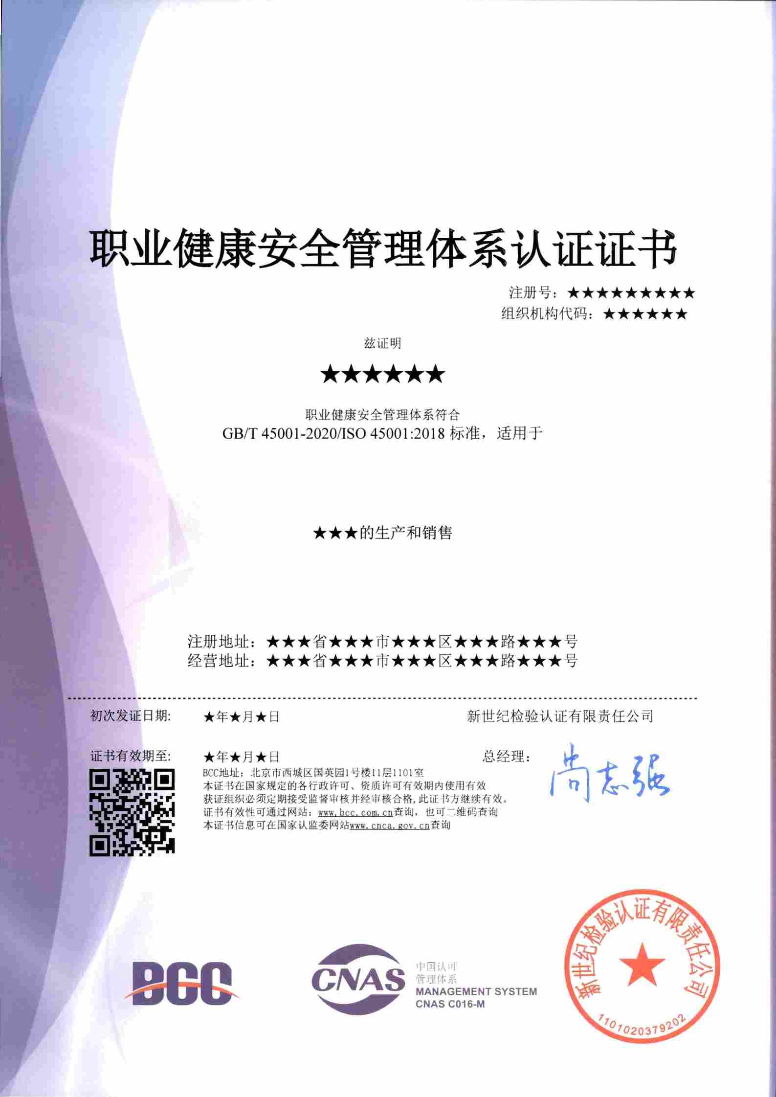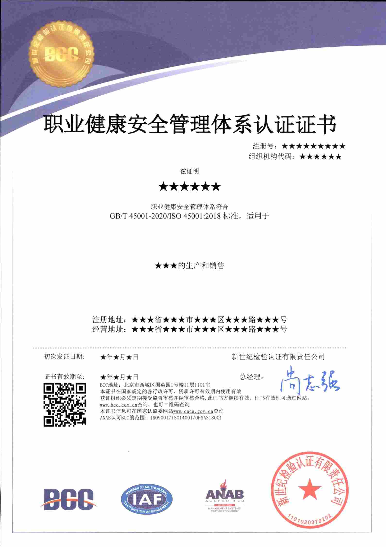 職業(yè)健康安全管理體系證書(shū)是什么樣?
