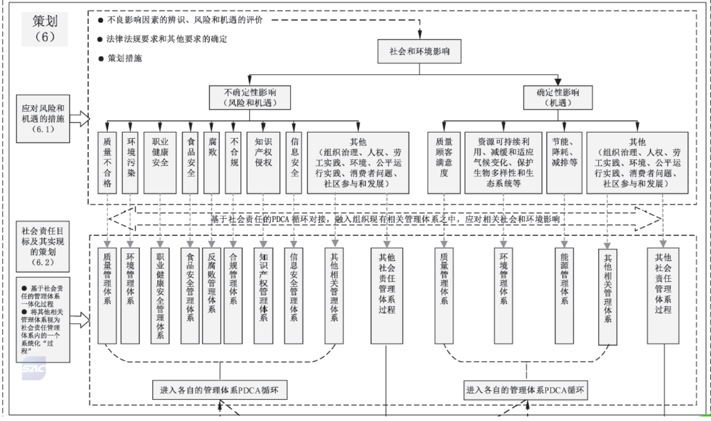 使組織能夠以社會(huì)責(zé)任為抓手,從頂層治理(價(jià)值觀、使命、精神和發(fā)展戰(zhàn)略等)視野出發(fā),統(tǒng)領(lǐng)、規(guī)范、協(xié)調(diào)和融合組織內(nèi)其他相關(guān)管理體系(如質(zhì)量管理體系、 環(huán)境管理體系、職業(yè)健康安全管理體系、食品安全管理體系、反腐敗管理體系、合規(guī)管理體系、知識(shí)產(chǎn)權(quán)管理體系、信息安全管理體系等),有效實(shí)現(xiàn)組織管理體系的一體化。